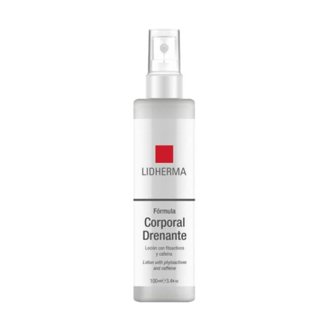 Formula Corporal Drenante x 100ml Loción que contiene liposomas de cafeína y un fitoactivo rico en cumarinas, sinefrina y flavonoides. Su acción sinérgica mejora la apariencia de la piel con celulitis y reduce la sensación de cansancio en las piernas. Apto para aparatología: Electroporador, Microneedling.