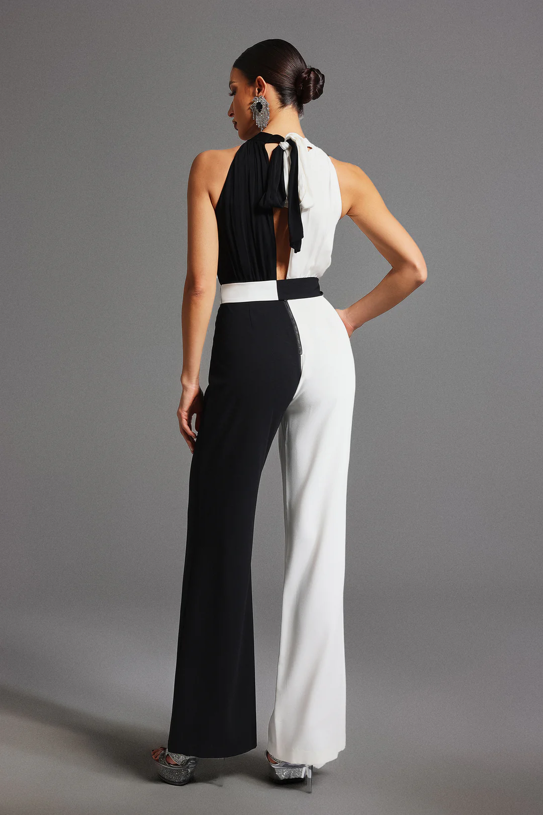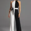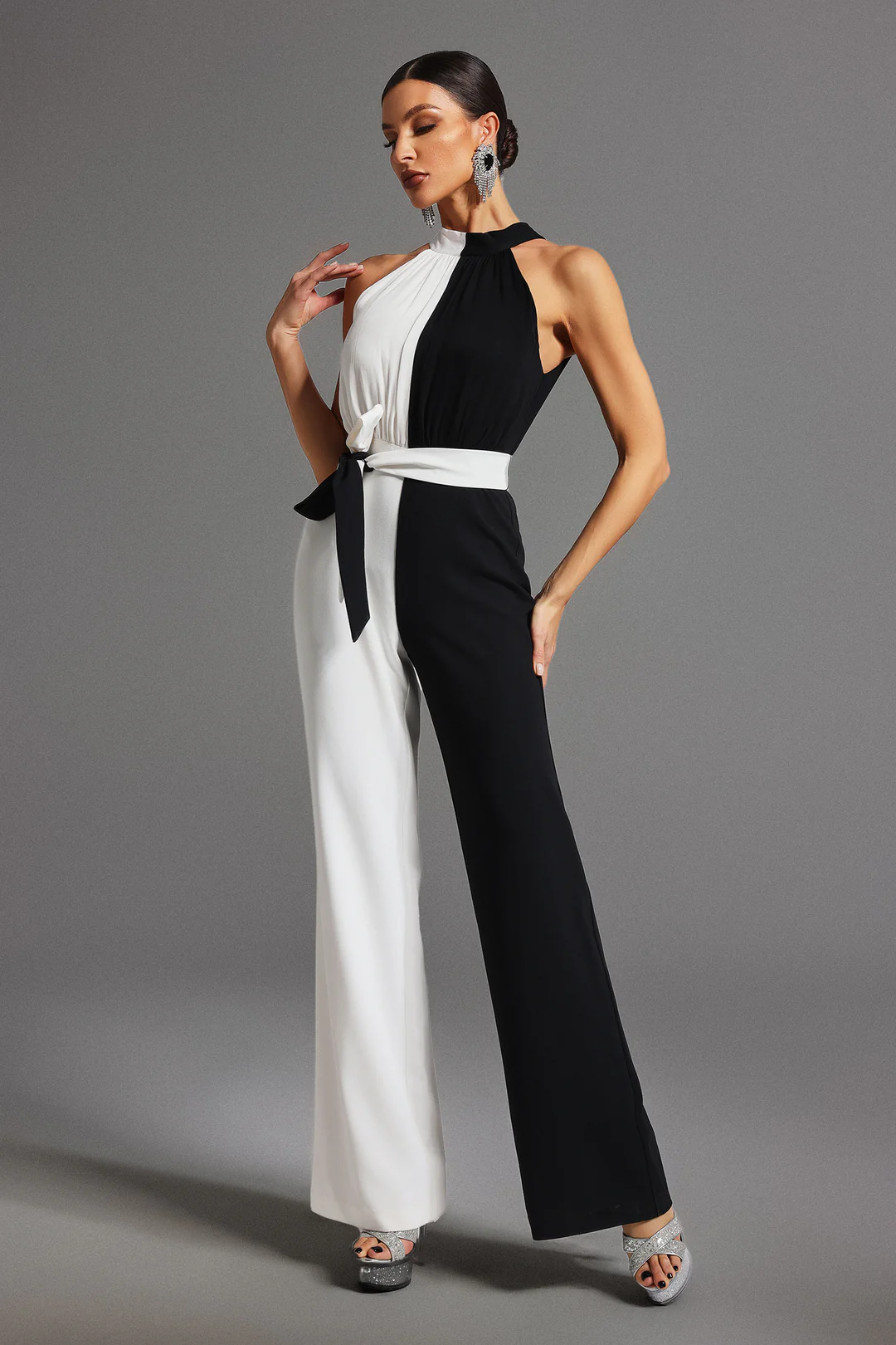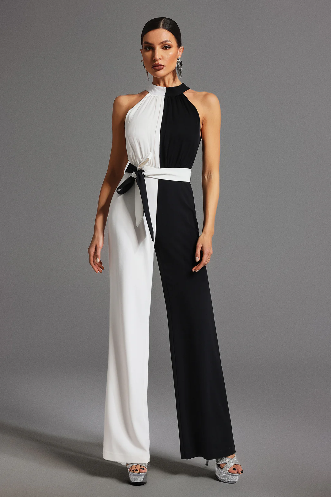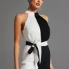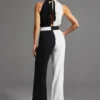 Mono largo con diseño en blanco y negro que genera un contraste elegante. Su corte estiliza la figura y lo convierte en una opción única.